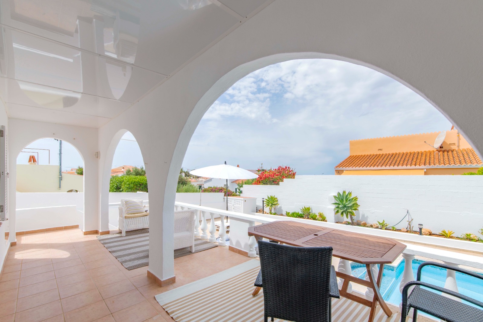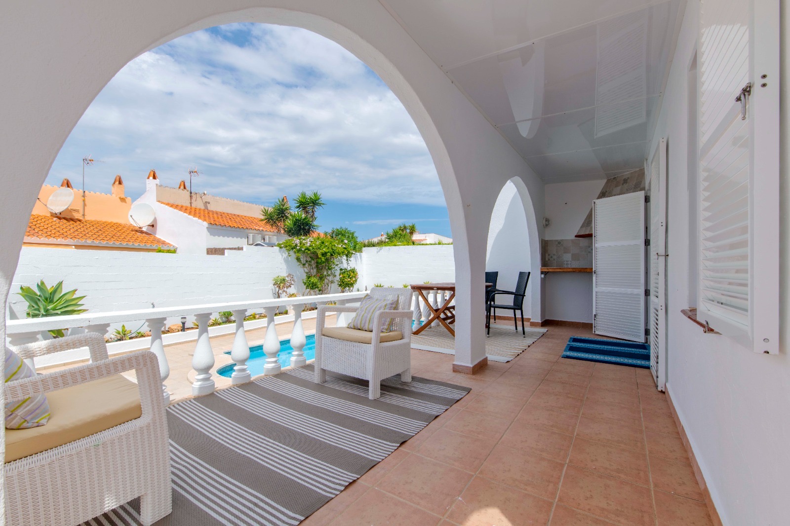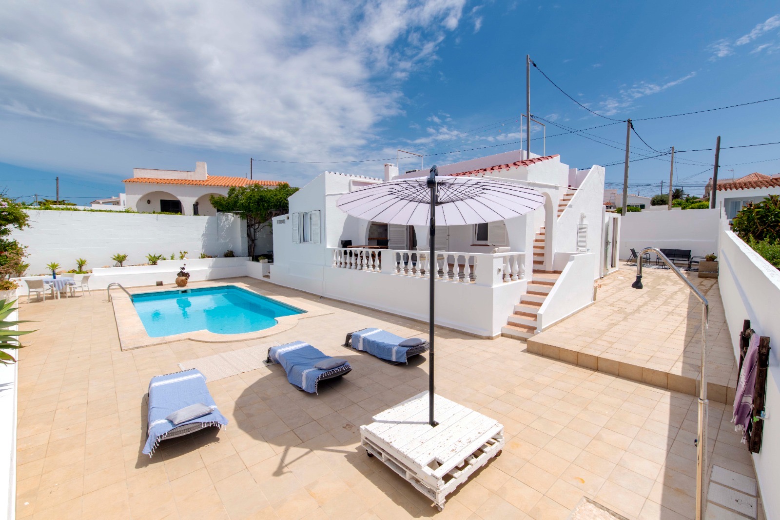 This 90 m2 villa built in a plot of 450 m2 is located only a 10-minute walk from the wonderful white sandy beach of Calan Porter.