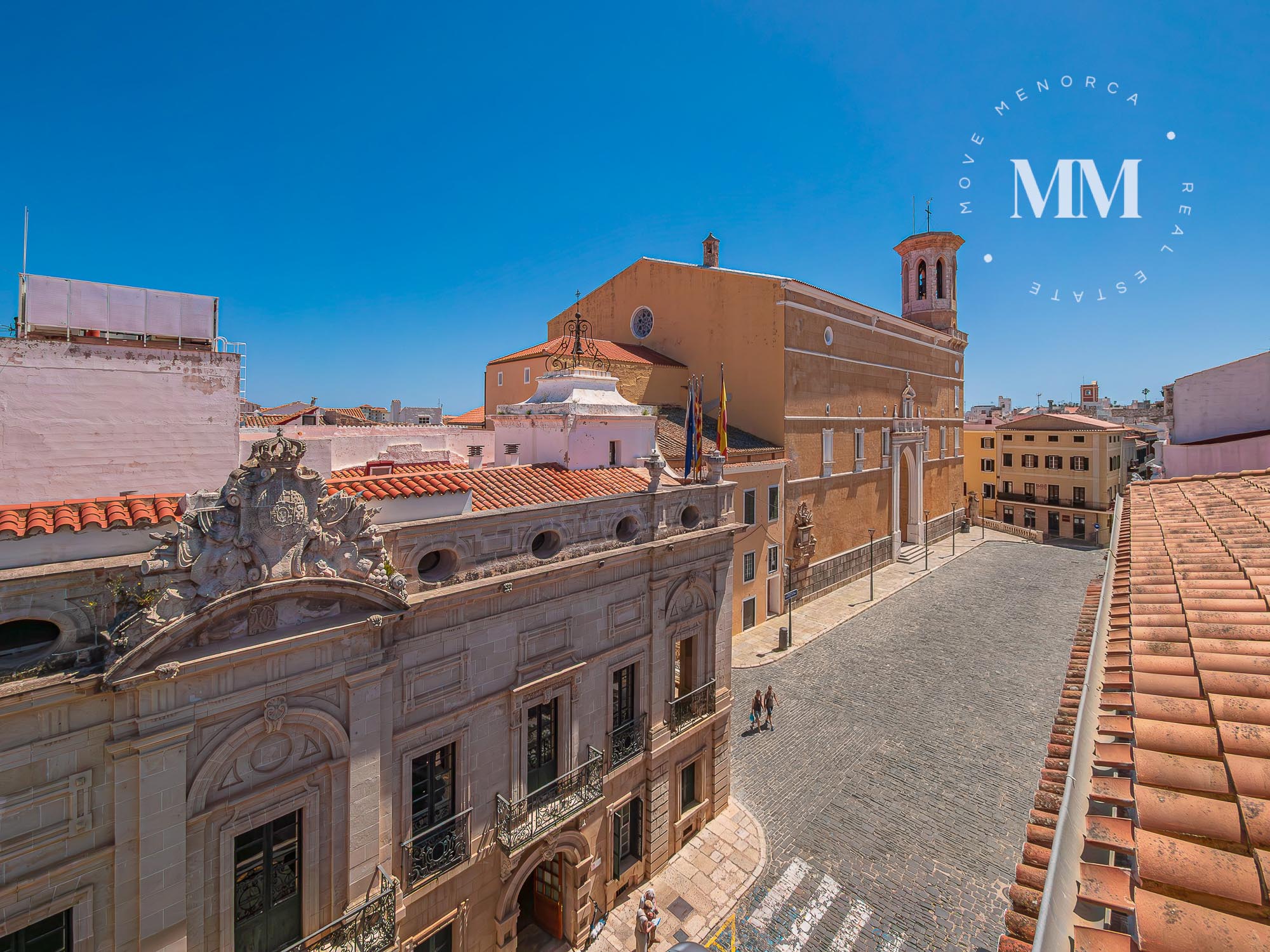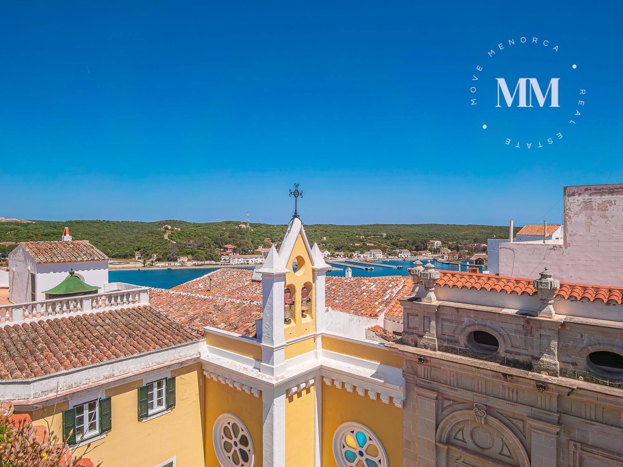 On the upper floors, two private terraces offer views over the Port of Mahón, extending the living space outdoors and providing a privileged setting.